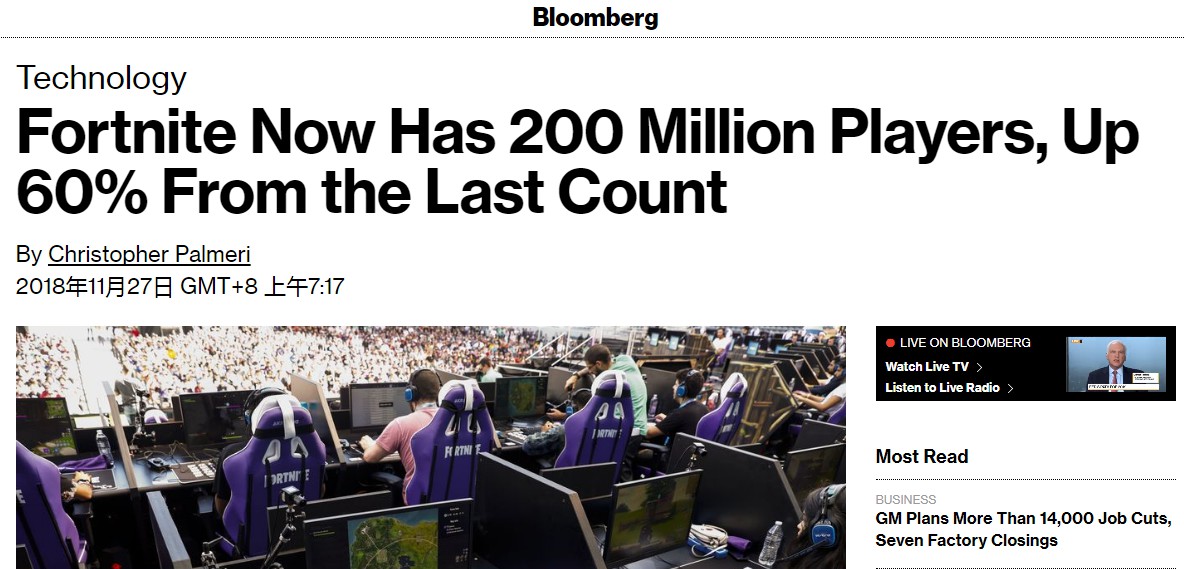 据彭博社报道,目前《堡垒之夜》全球注册玩家已经超过了2亿,远远超过了上次统计人数的1.25亿,涨幅高达60%。