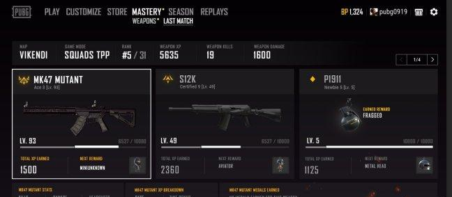 这个系统会追踪统计玩家所使用武器的各项数据,每种武器有10个等级。玩家通过在比赛中获得武器经验(WeaponXP)来进行升级,命中困难的目标,活得更久,击败更多的敌人都可以让你更快升级。