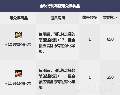特别花篮的物品需要金秋花篮特别凭证可兑换。