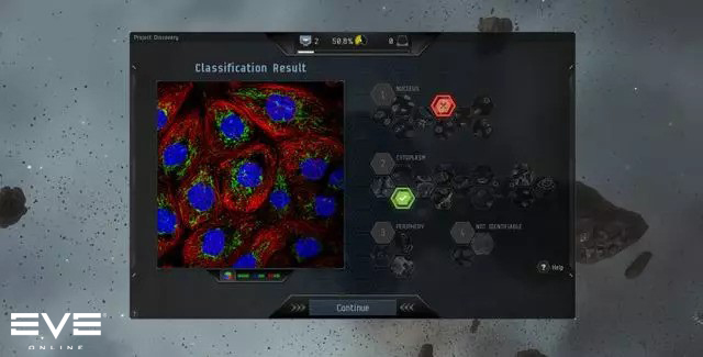 该论文由CCP游戏公司、瑞典皇家理工学院和大型多人在线科学(Massively Multiplayer Online Science)联合发起,项目共有30多万名游戏玩家参与。通过玩家注释与机器学习方法相结合,EVE玩家们成功地帮助科学家们改进了预测亚细胞水平蛋白质定位的AI系统——定位细胞注释工具(Loc-CAT),改善了亚细胞蛋白质模式的分类,并首次鉴定了被称为“Rods&Rings”的10个新细胞结构家族成员。
