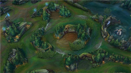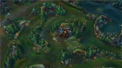 野区:野区中的大部分草丛变得更高大茂盛,全新的蜜糖果实现在会在靠近增益野怪营地的地方刷新。野区出现汇聚而成的水池,如果你是元素女皇或装备了水上行走符文,你将获得加成。