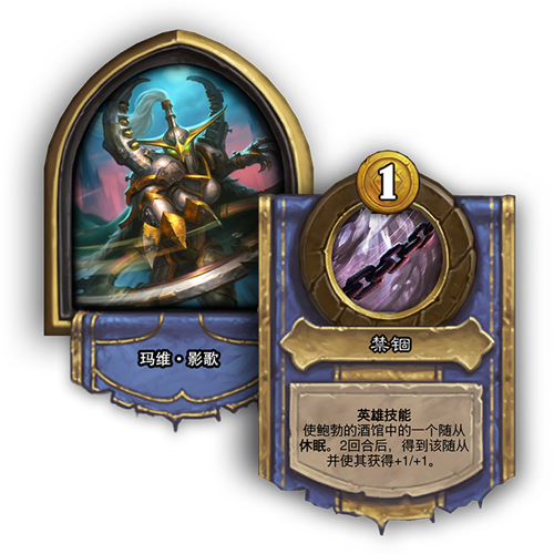 禁锢 [消耗1枚铸币]:使鲍勃的酒馆中的一个随从休眠。2回合后,得到该随从并使其获得+1/+1。