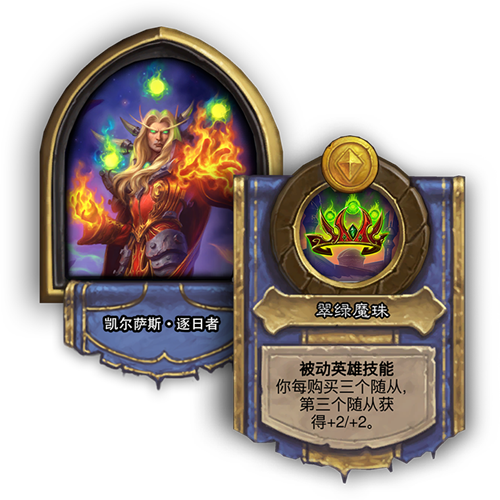 翠绿魔珠 [被动]: 你每购买三个随从,第三个随从获得+2/+2。
