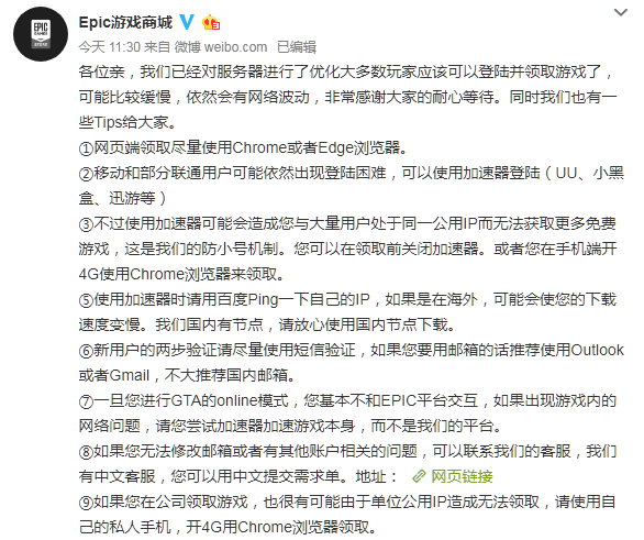 Epic商城:服务器已优化 玩家能正常领取游戏了