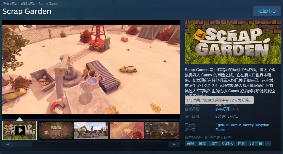 Steam喜加一:《废弃花园》免费领取 机器人末日冒险