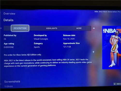 《NBA 2K21》在Xbox Series X中容量超过120GB