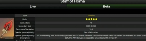 特性:增加角色血HP上限的20%,为角色提供自身HP上限的0.8%伤害加成,在角色自身HP低于50%时候,将提供角色自身HP上限的1%