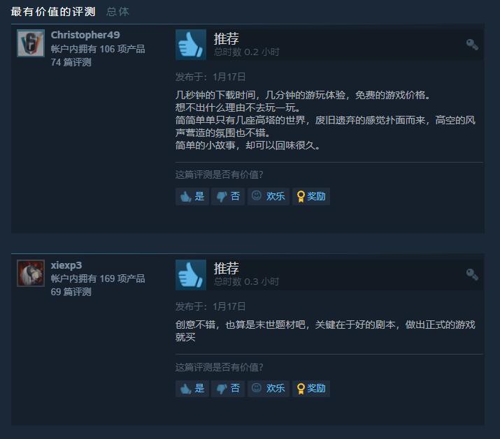 根据介绍,该游戏只有10~15分钟时长,有多座荒凉的高塔需要玩家一一探索,寻找故事背后的真相,游戏的故事设定独特而有吸引力,也能引发玩家的思索。它完全采用手绘画风,有完整的配音,不过不支持中文。