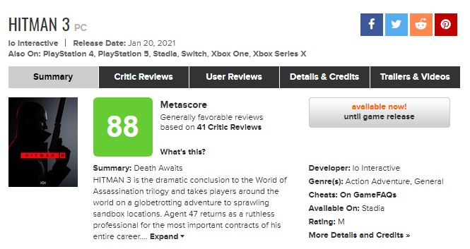 《杀手3》今日正式发售!M站均分88:最好的杀手游戏