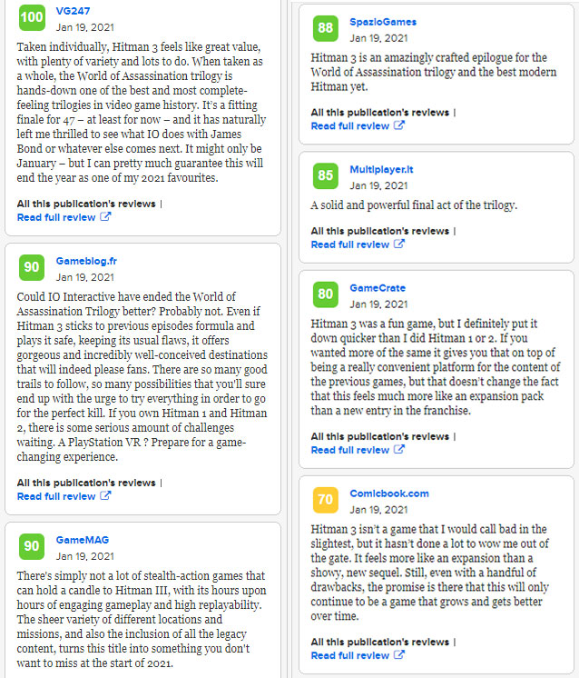 Multiplayer.it:85分。《杀手》三部曲的完结之作,扎实且有力。
