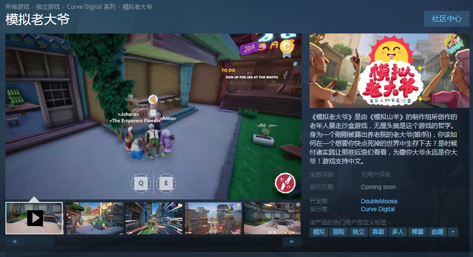 《模拟老大爷》是由《模拟山羊》(Goat Simulator)的制作组所创作,由《人类一败涂地》(Human Fall Flat)发行商推出的一款无厘头的老年人暴走沙盒游戏。现已上架Steam,游戏将在不久之后发售,支持中文,敬请期待。喜欢无厘头的老年人暴走沙盒游戏的小伙们记得加入《快乐游加速器》届时抢先体验哦!