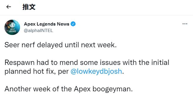 自《Apex英雄》第10赛季开始以来,新英雄希尔就一直是热门话题,因为该英雄过于强大,重生承诺将推出补丁修复,但是根据重生工作室开发人员Josh Medina的消息,削弱补丁将被推迟一周。