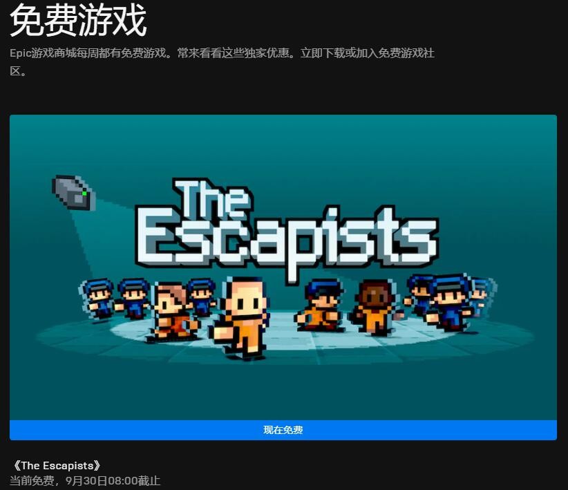 Epic本周喜加一更新 免费领取《脱逃者》