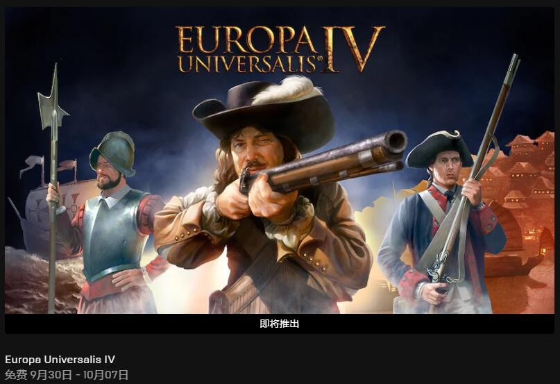 目前公布的下周免费领取游戏暂时有一款:《欧陆风云4》(Europa Universalis IV),免费领取时间为北京时间9月30日至10月7日。