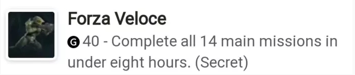 在这些公布的成就中,一个名叫“Forza Veloce”速通任务显示《光环:无限》战役模式将包含14个主线任务,该成就描述为:“8小时内完成所有14个主线任务”,如果加上支线任务以及地图探索预计战役模式总流程在30-40小时。