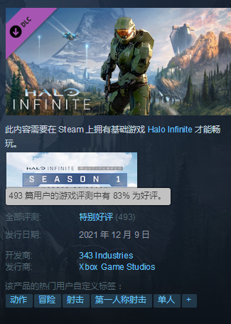 《光环:无限》战役正式解锁,Steam上收获玩家特别好评,游戏好评率83%。