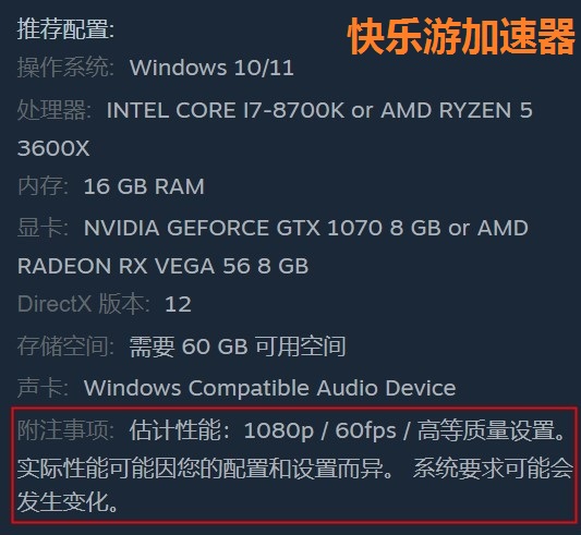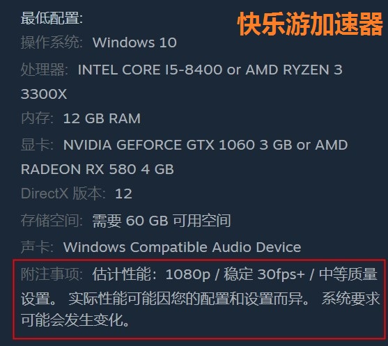 《艾尔登法环》的Steam页面更新了推荐配置对应的具体画面表现。根据官方的说法,最低配置GTX1060(3GB)或RX 580(4GB)显卡在1080p分辨率中等画质下可以稳定30帧以上。推荐配置GTX1070或RX VEGA 56显卡在1080p分辨率高画质下可稳定60帧。不过,实际性能可能因玩家的配置和设置而异,系统要求可能会发生变化。