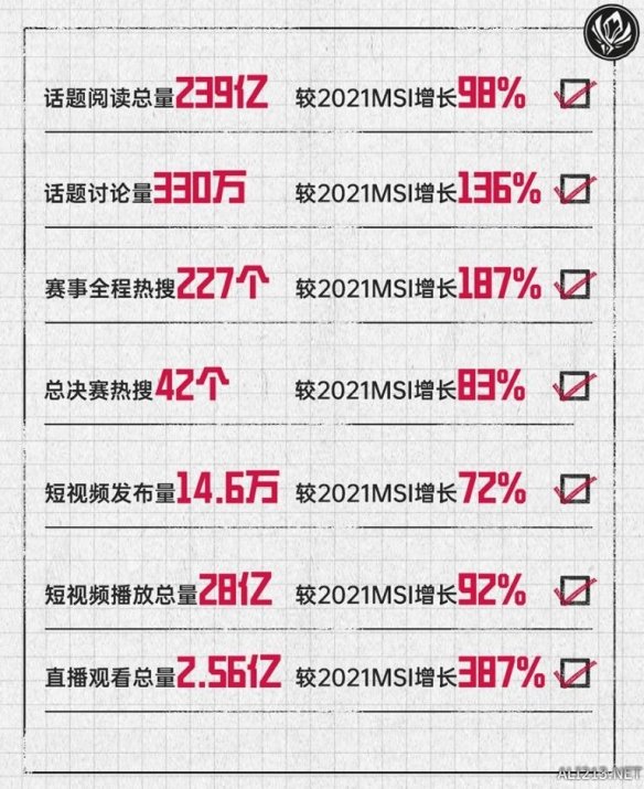 过去半个月里,作为仅次于S赛的英雄联盟世界级赛事之一,《英雄联盟》季中冠军赛(以下简称“MSI”)打破圈层进入公众视野。数据显示,二十天的赛期里,微博平台相关话题阅读总量是2021年的近两倍,话题讨论和全程热搜总数均大幅超越,直播观看总量的增幅更是近4倍。