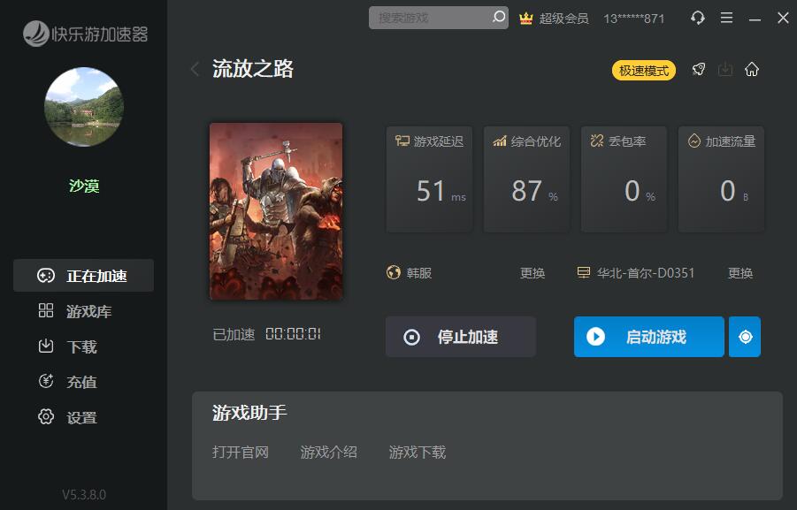 同时《快乐游加速器》支持《流放之路》韩服、美服、国际服及国服加速,选择需要的会员账号并选择区服,点击加速即可畅玩游戏。