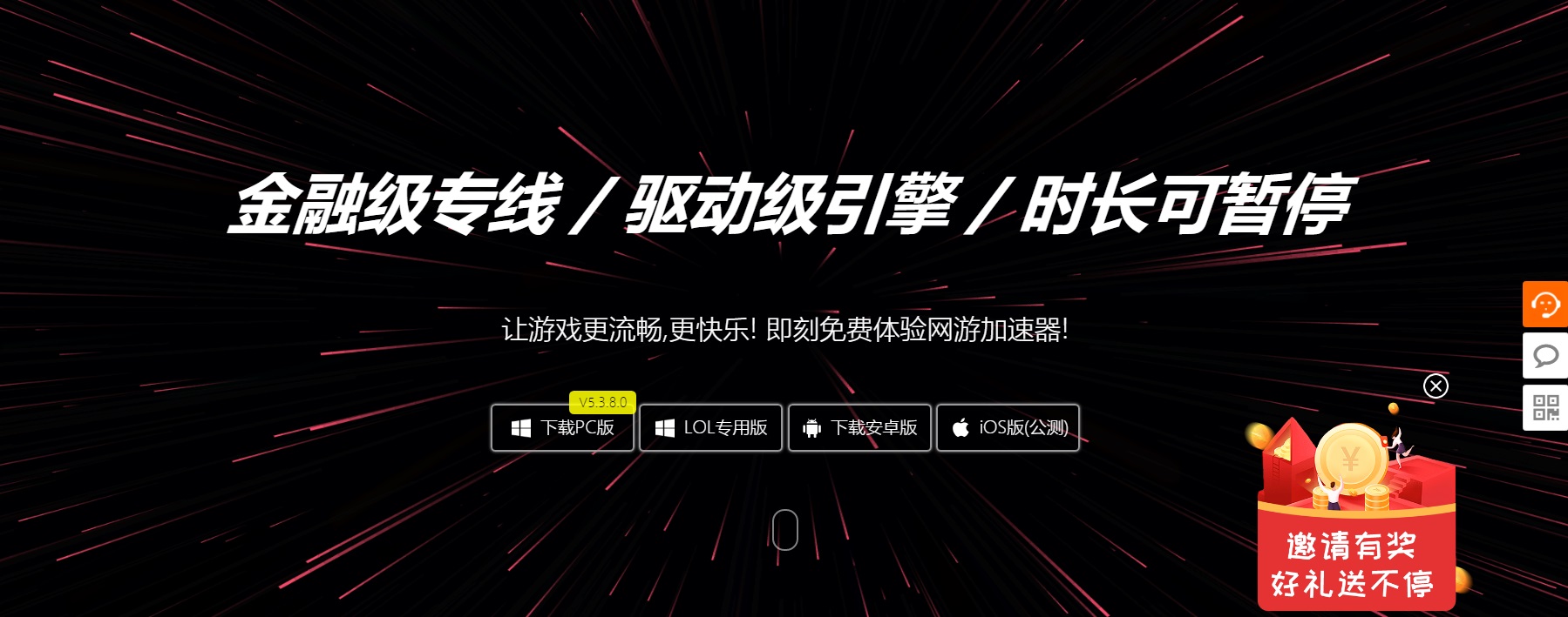 赶快下载《快乐游加速器》客户端,注册即送免费时长!金融级专线,驱动级引擎,时长可暂停。