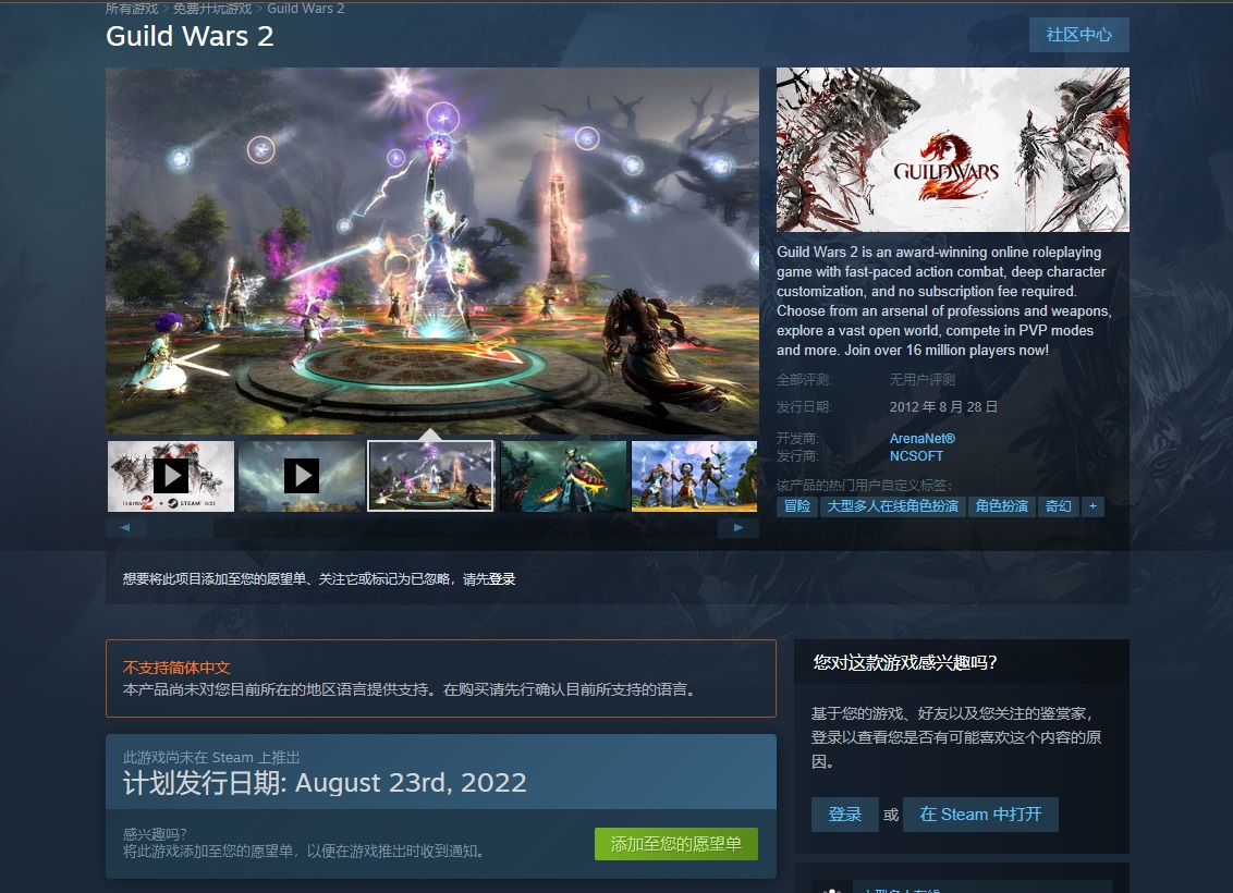 《激战2》将于8月23日发行!现已登录Steam