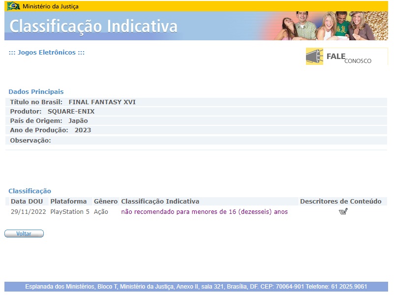 SE角色扮演游戏《最终幻想16》现已在巴西通过游戏评级,游戏建议16岁以上游玩,本作将于2023年夏季登陆PS平台。