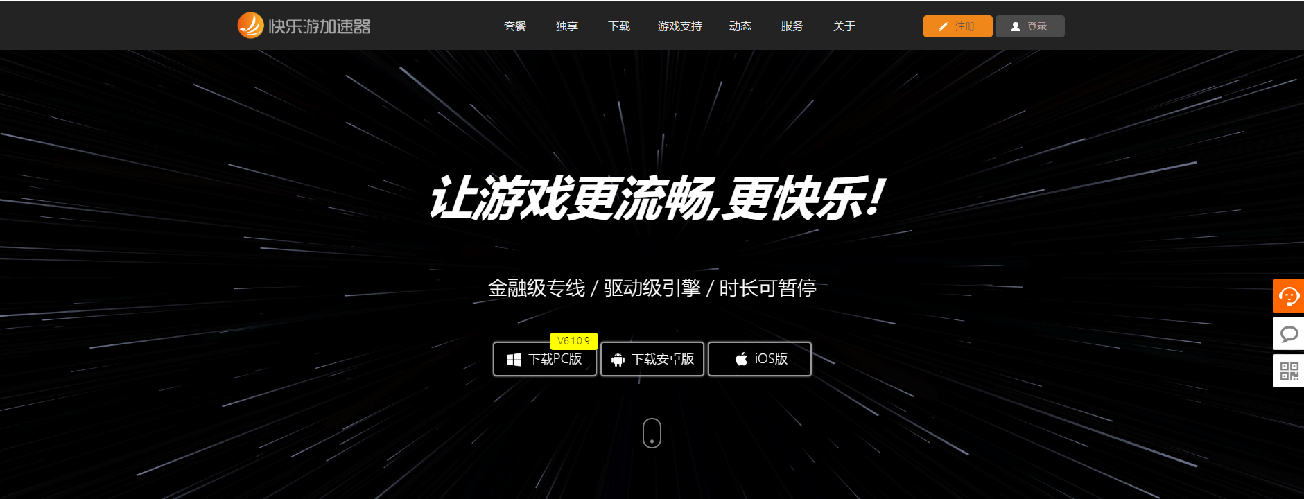 赶快下载《快乐游加速器》客户端,注册即送免费时长!金融级专线,驱动级引擎,时长可暂停。