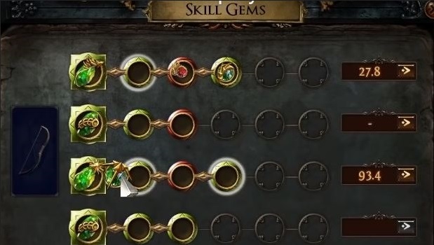 虽然和《暗黑破坏神》类似,但《流放之路》中非常具有特色的一点就是玩家所使用的各种技能并非是职业升级获取,而是通过在装备上安装技能宝石获得。