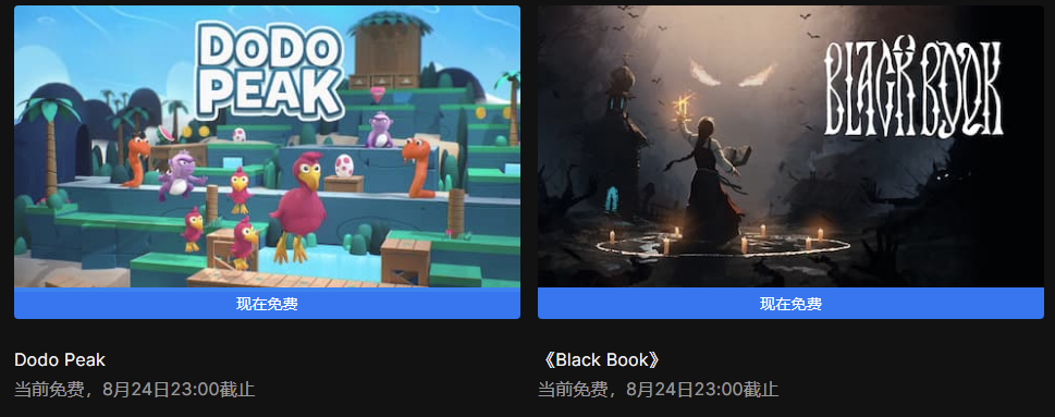 Epic本周喜加二已更新,《渡渡鸟峰(Dodo Peak)》、《黑色名册(Black Book)》免费领,领取时间为08月17日23点至08月24日23点。