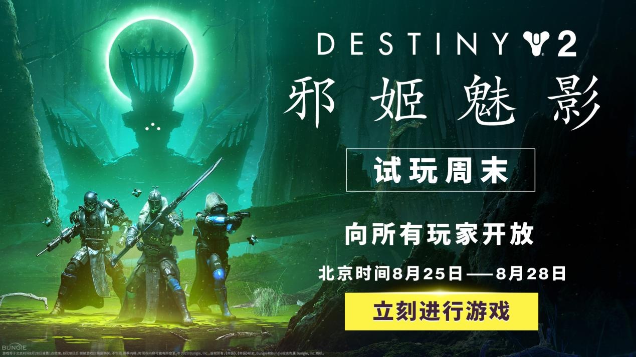 北京时间8月25日至8月28日,《命运2:邪姬魅影》将开启免费试玩周末。在此期间内,所有玩家都可以免费体验《邪姬魅影》的内容。