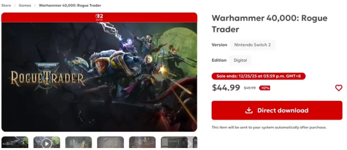 《战锤40K:行商浪人》Switch 2版已于12月14日正式发售,美区eShop售价44.99美元(约318元人民币),日区售价6500日元(约294.7元人民币)。