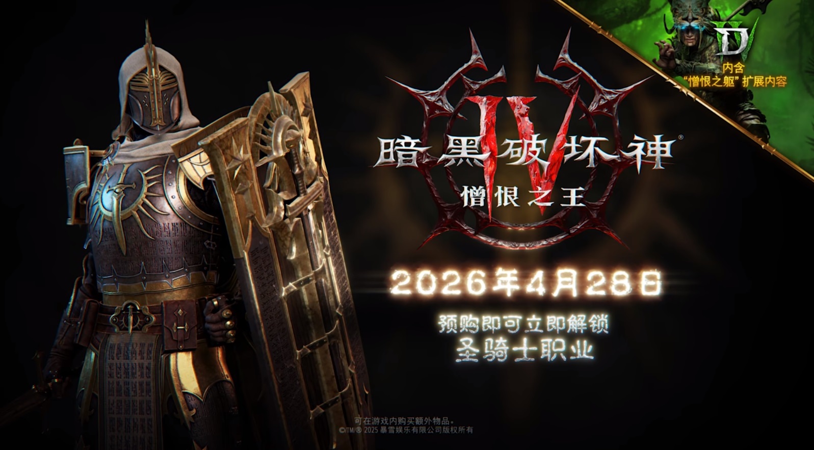 憎恨焚世,魔神再临!《暗黑破坏神4:憎恨之王》4月28日正式上线