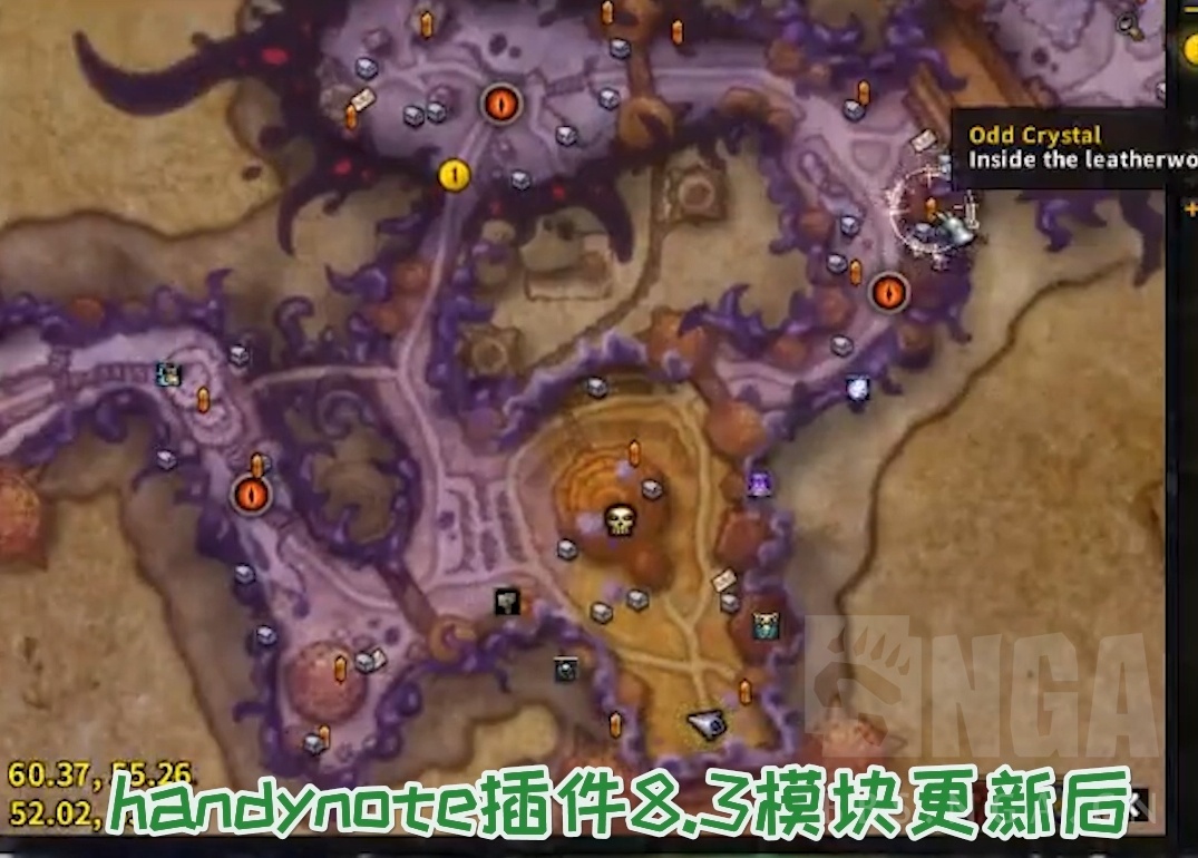 handynote插件8.3模块更新后,在地图直接显示了水晶的位置,3~4个位置中有2个有水晶。